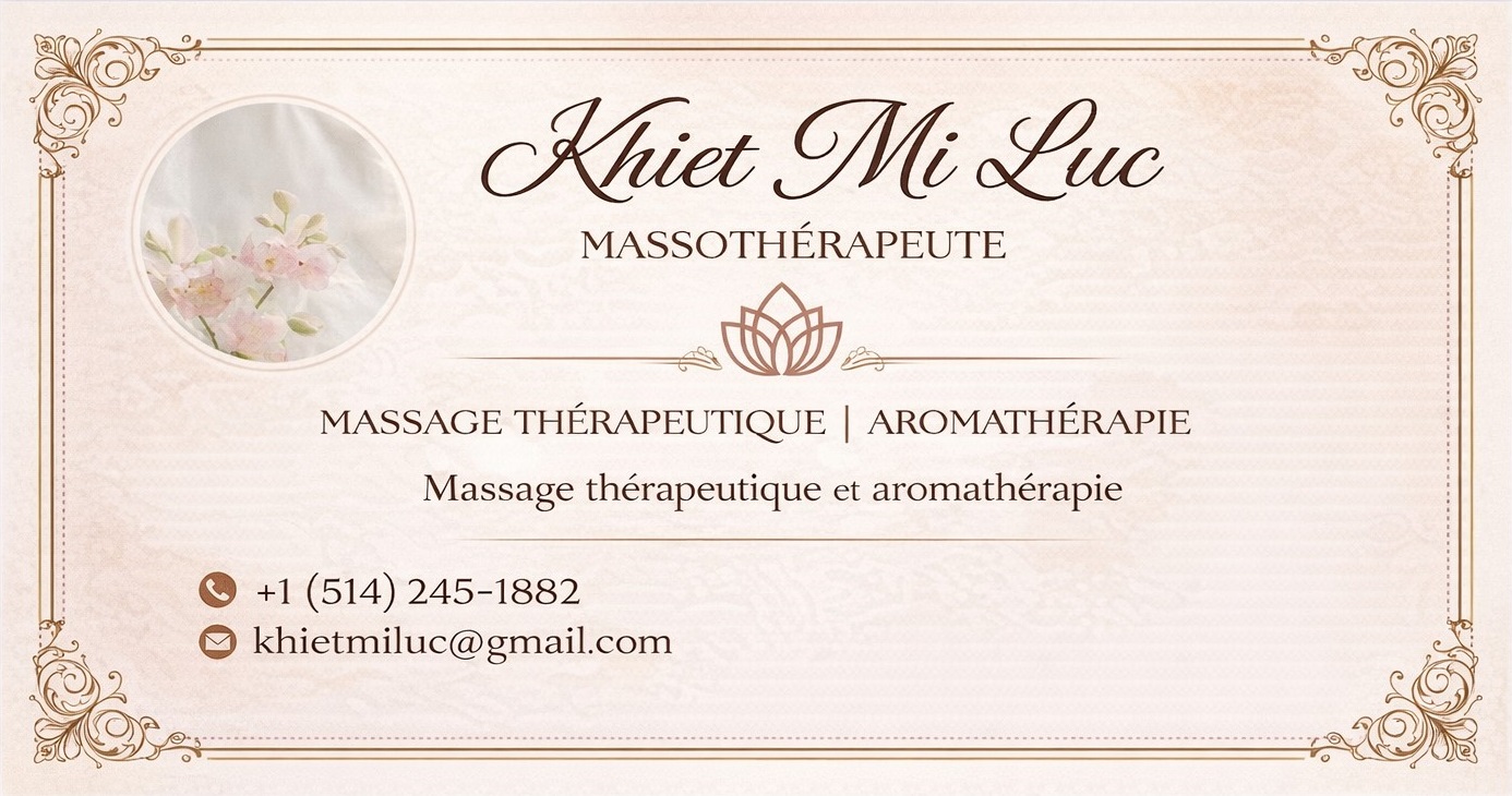With over 20 years of experience in massage therapy, Khiet specializes in therapeutic treatments designed to relieve muscle pain and tension. Khiet's expertise in aromatherapy supports relaxation and recovery, and she provides personalized care tailored to each patient's needs.